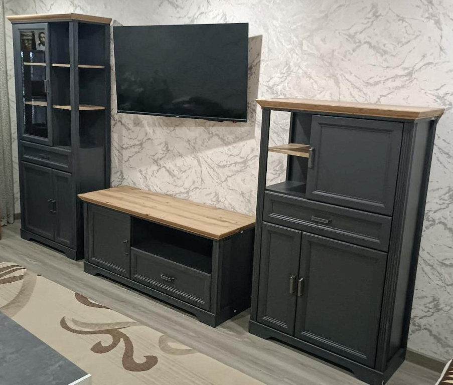 Нетривиальное сочетание классики и скандинавских мотивов: столешницы с древесной текстурой, изящные гофрированные планки, металлические ручки и стильные ножки. Насыщенный графитовый цвет фасадов и фурнитура с системой плавного закрывания — отличительные особенности коллекции Jasmin, выполненной в «темном скандинавском» стиле.