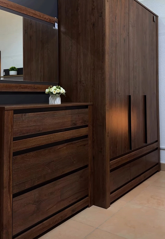 Коллекция Kada — это благородство в каждой детали. Изысканный древесный цвет фасадов, контрастные тёмные вставки, массивные стенки и геометрические формы создают гармоничное сочетание классики и современности.