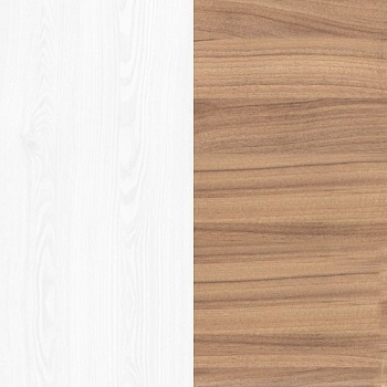 Великолепные фасады коллекции Malta удачно контрастируют со вставками из "ореха лион", продолговатые металлические ручки добавляют изящества, а подсветка стеклянных полок выгодно подчеркивает древесную структуру.