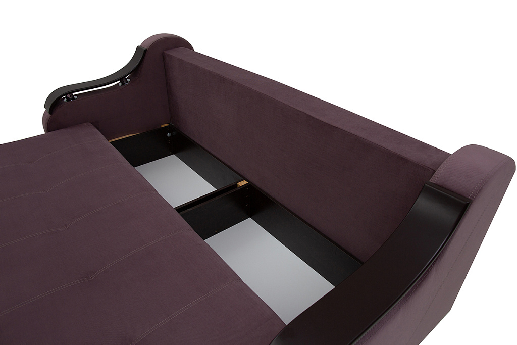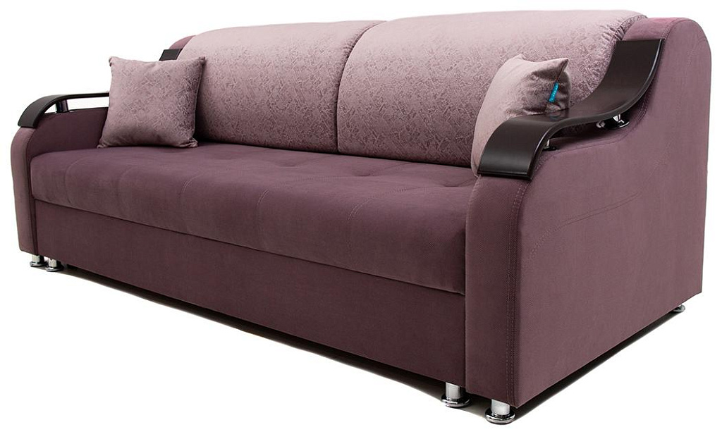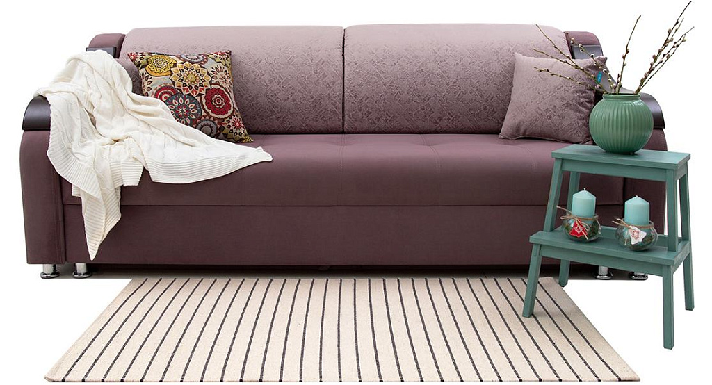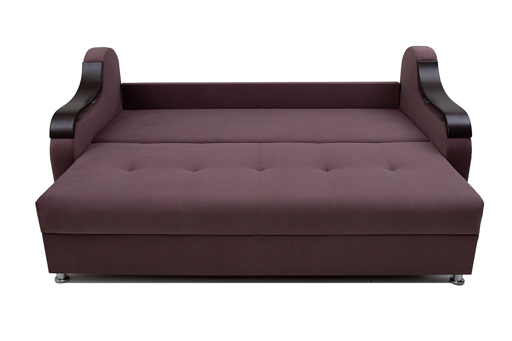 Диван-кровать Агата — современная, удобная, простая модель. В разложенном виде образует большое спальное место. Комплектуется двумя формованными большими подушками и двумя маленькими декоративными. Сидение на основе независимого пружинного блока. Имеется емкость для постельных принадлежностей. На боковинах используются ламинированные накладки. Может изготавливаться в разных цветовых решениях. Механизм трансформации – еврокнига.