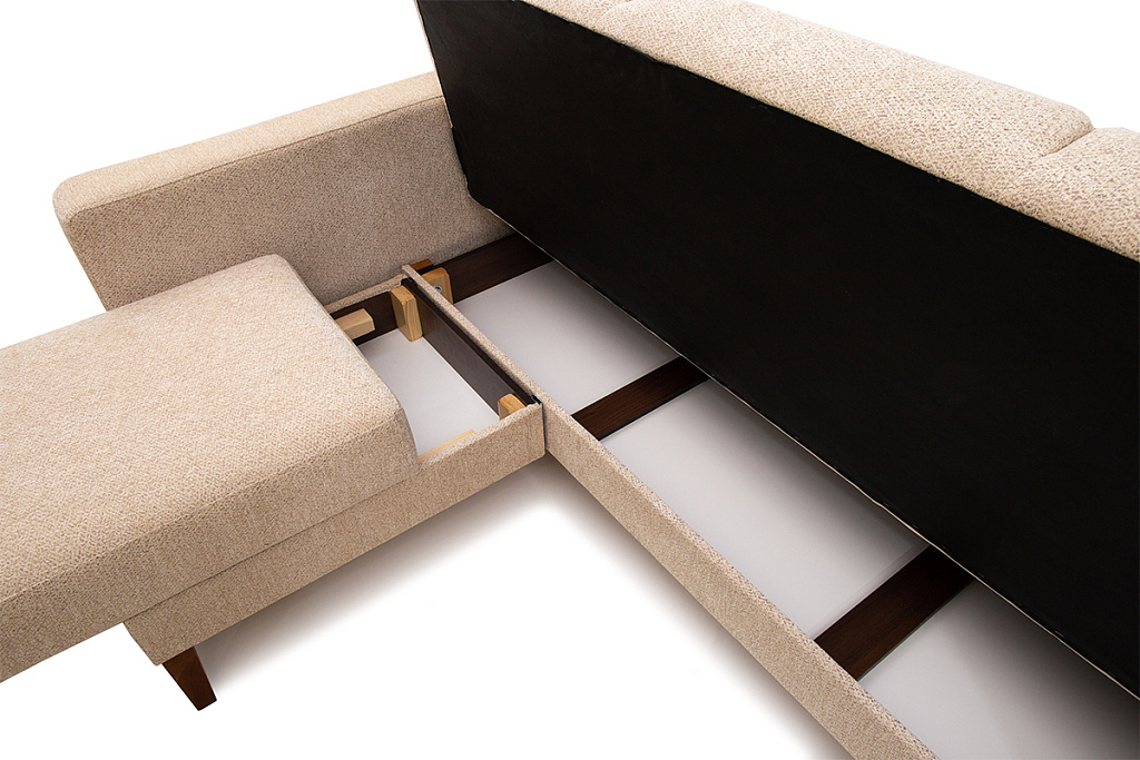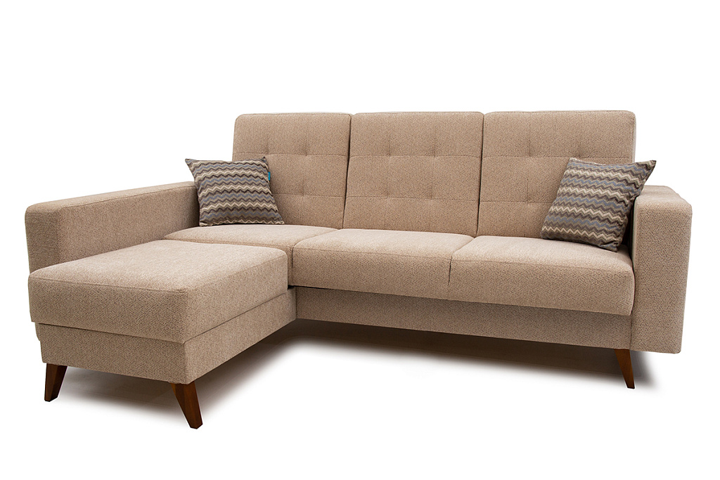 Диван-кровать угловой Доменика — современная, практичная модель предназначенная для ежедневного отдыха. Идеальное решение для небольшой гостиной городской квартиры. Диван на опорах из натурального массива, он будет удачно гармонировать с изделиями из натуральных пород дерева. В комплект входят две декоративные подушки. Имеется ящик для хранения. Возможна комплектация левого и правого угла. Механизм трансформации «книга» обеспечивает надёжность эксплуатации дивана.
