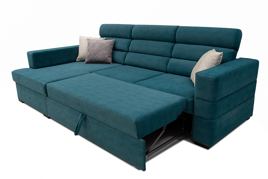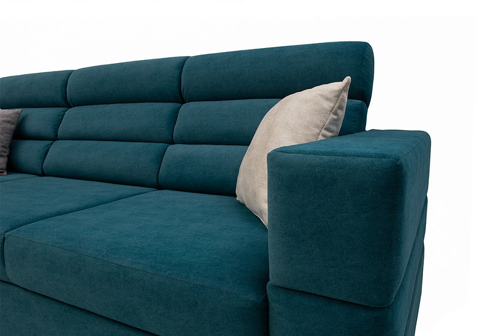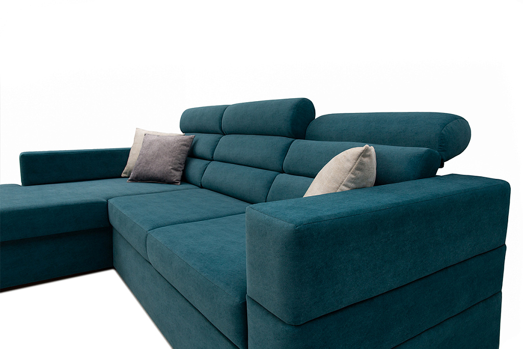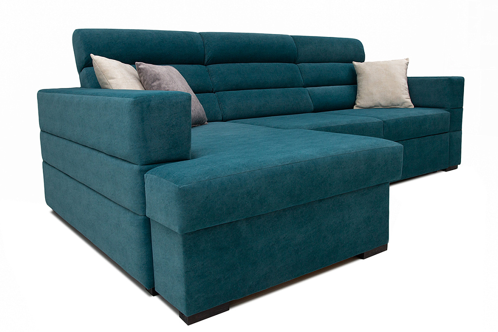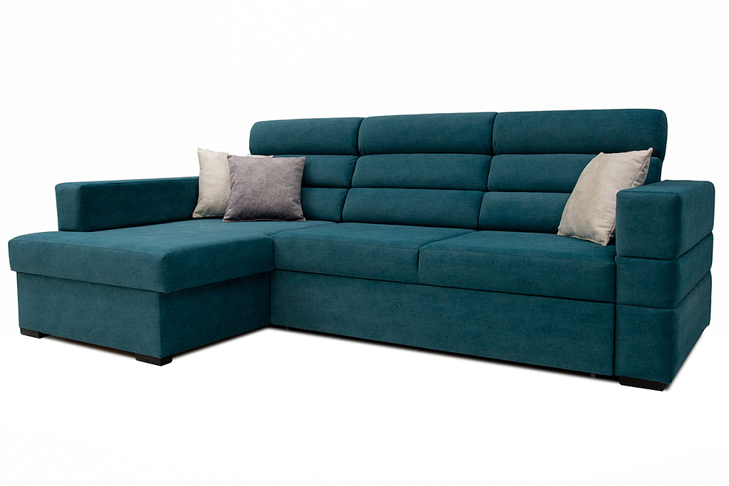 Диван-кровать угловой Эмилия — удобная, простая модель, с большим спальным местом. В разложенном виде представляет удобную 2-х спальную кровать. Сидение на основе независимого пружинного блока. Имеется емкость для постельных принадлежностей в угловой части дивана. Подушки спинки не съемные, оснащены механизмом, который позволяет менять угол наклона. В комплект входят 3 декоративные подушки. Возможна комплектация левого и правого угла. Может изготавливаться в разных цветовых решениях. Механизм трансформации — «дельфин».