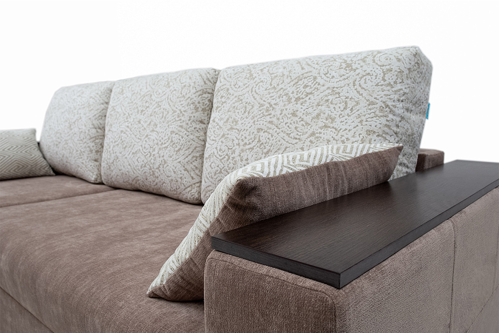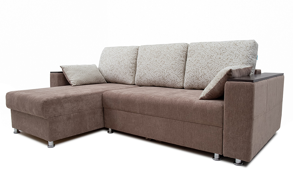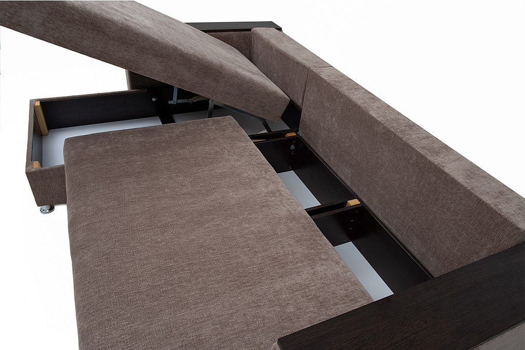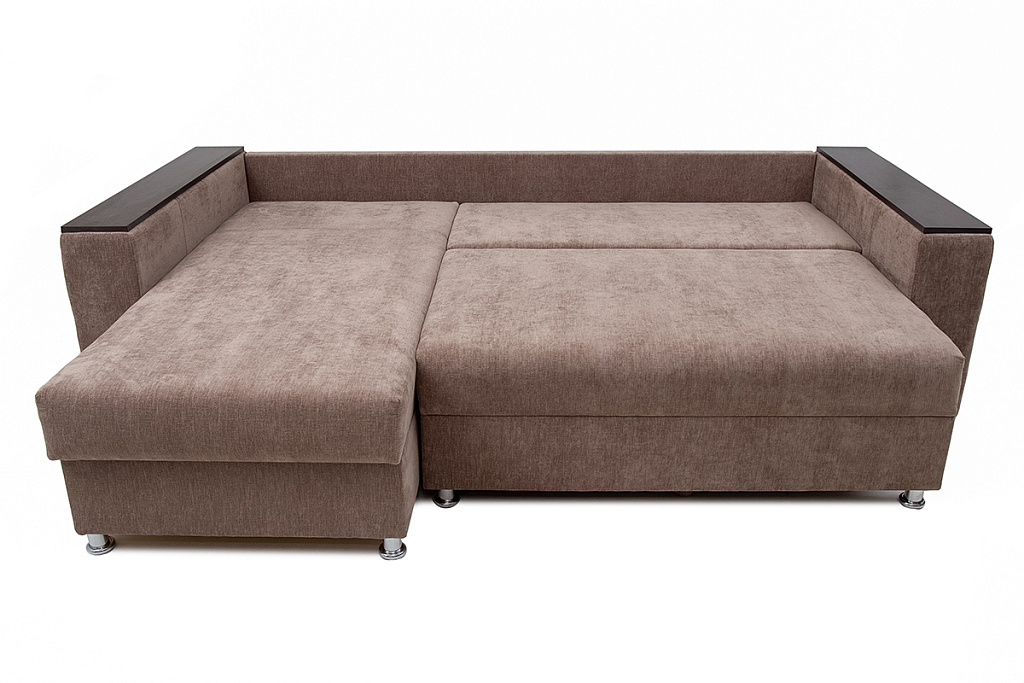 В угловом диване-кровати «Марго 01» встроен механизм трансформации «еврокнига». Это простая и очень надежная конструкция, с ней легко справятся дети. Для трансформации необходимо потянуть на себя сиденье, а затем опустить на освободившееся место спинку. В разложенном виде получается два спальных места.