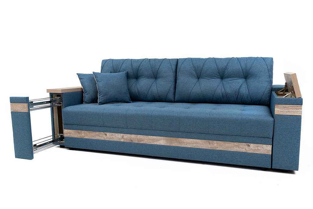 Диван-кровать Руслана-2 — современная, удобная, простая модель. В разложенном виде представляет удобную 2-х спальную кровать. Сидение и спинка на основе независимого пружинного блока. Имеется емкость для постельных принадлежностей. В правой боковине располагается карго, в левой – минибар, который открывается при помощи верхней декоративной накладки. В комплект входят 2 подушки спинки и две маленькие декоративные подушки. Может изготавливаться в разных цветовых решениях. Механизм трансформации — «еврокнига».