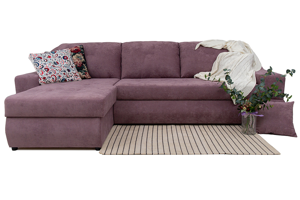 Диван-кровать угловой Ульяна — удобная, простая модель, с большим спальным местом. В разложенном виде представляет удобную 2-х спальную кровать. Сидение на основе независимого пружинного блока. Имеется емкость для постельных принадлежностей. Подушки спинки не съемные. В комплект входят 2 декоративные подушки. Возможна комплектация левого и правого угла. Может изготавливаться в разных цветовых решениях. Механизм трансформации — «дельфин».