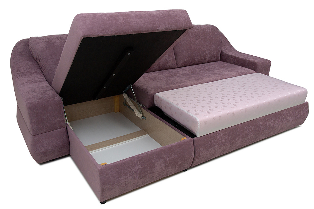 Самый популярный механизм из-за всеобщей моды на угловые диваны. Хорошо зарекомендовал себя по соотношению «цена — качество». Часть спального места находится под сиденьем , выдвигаем — получаем полноценную кровать.