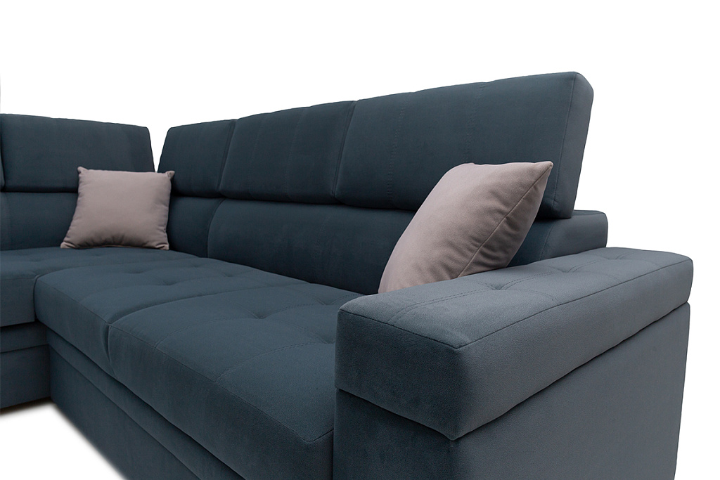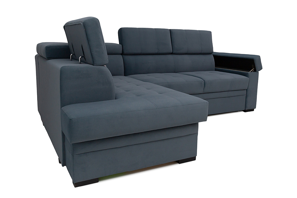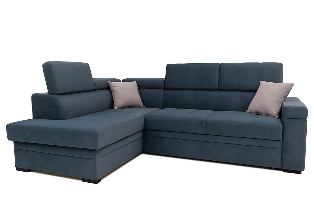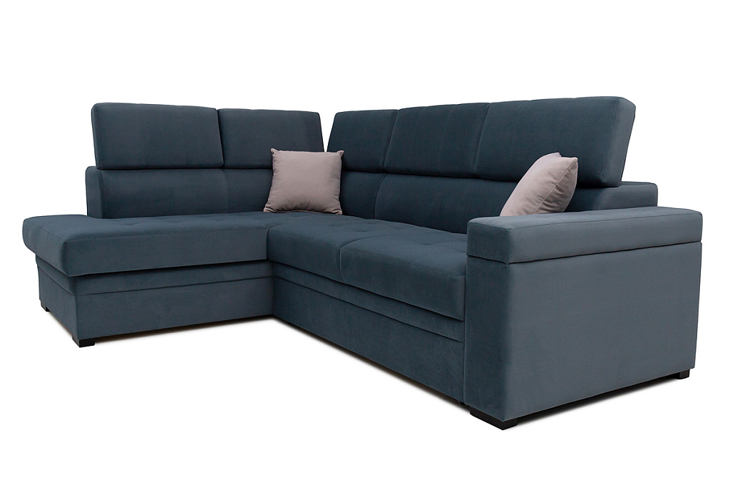 Диван-кровать угловой Влада — удобная, оригинальная модель, с большим спальным местом. В разложенном виде представляет удобную 2-х спальную кровать. Сидение на основе независимого пружинного блока. Имеется емкость для постельных принадлежностей в угловой части дивана. Подушки спинки не съемные, оснащены механизмом, который позволяет менять угол наклона. В комплект входят 3 декоративные подушки. Возможна комплектация левого и правого угла. Может изготавливаться в разных цветовых решениях. Механизм трансформации — «дельфин».