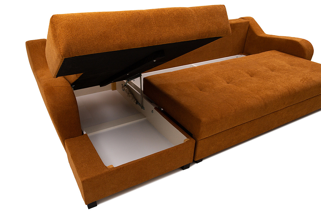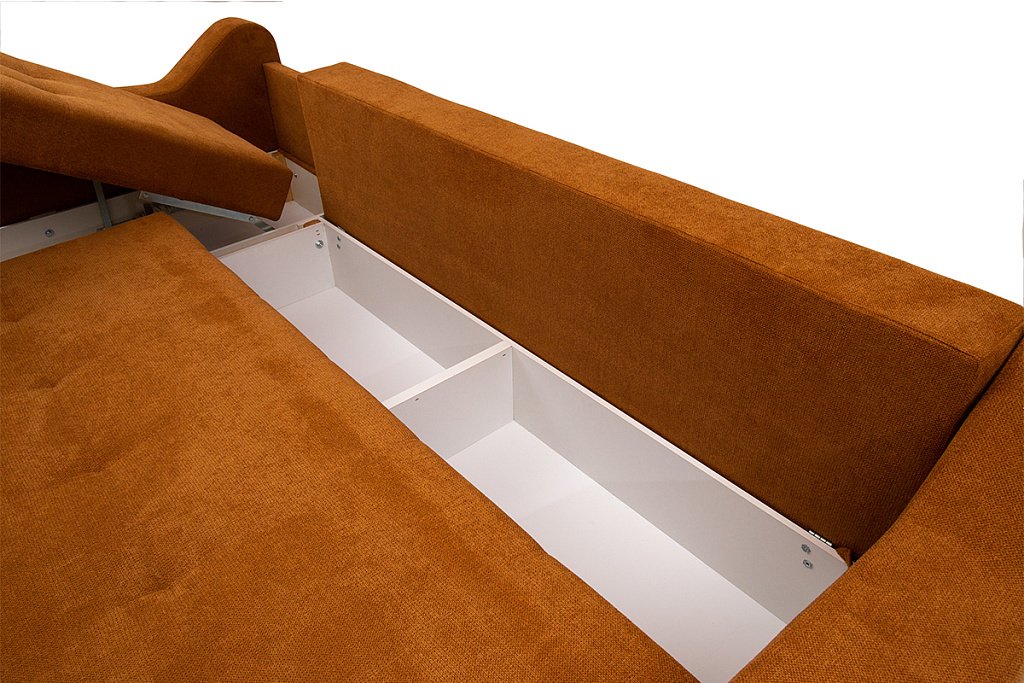 Основанием для сиденья и спинки служат пиломатериалы хвойных пород. Спинка и сиденья дивана выполнены на основе независимых пружинных блоков. В модулях предусмотрены два отсека для хранения постельного белья.
