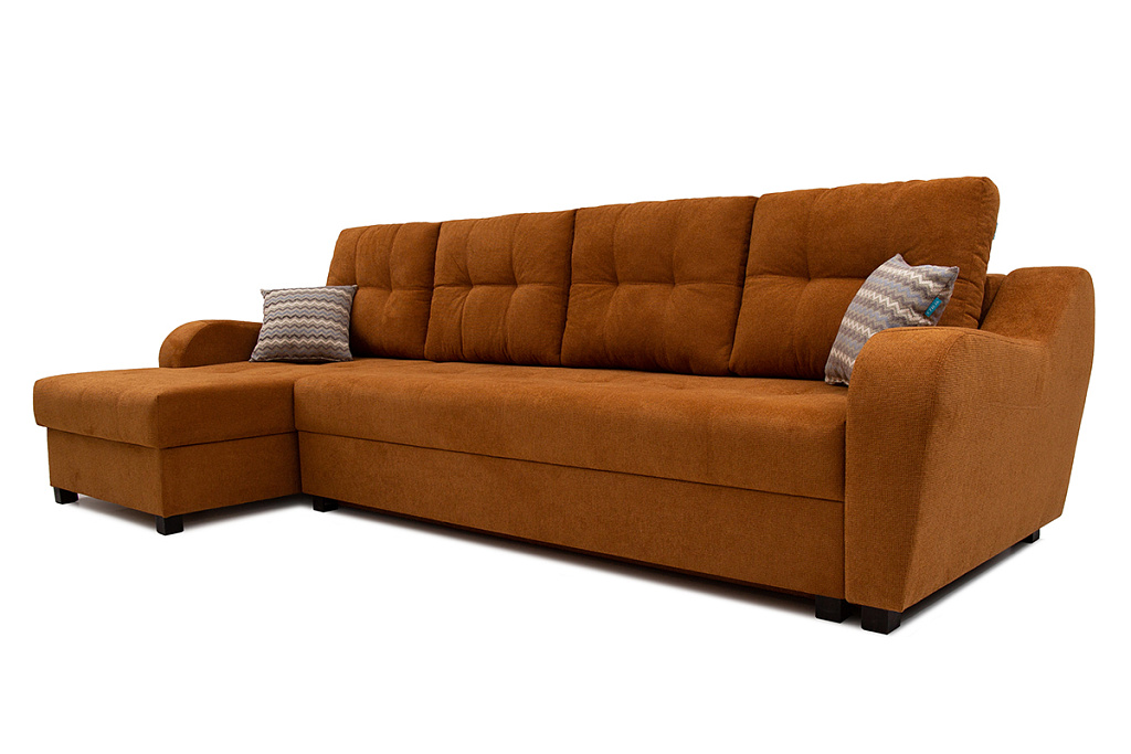 Диван-кровать угловой «Ярослава 1» состоит из длинной секции 1Д и угловой секции с подъемным механизмом 1П с ящиком для хранения. В комплект входят 4 большие и две декоративные подушки. Угол может быть как в правом, так и в левом исполнении.