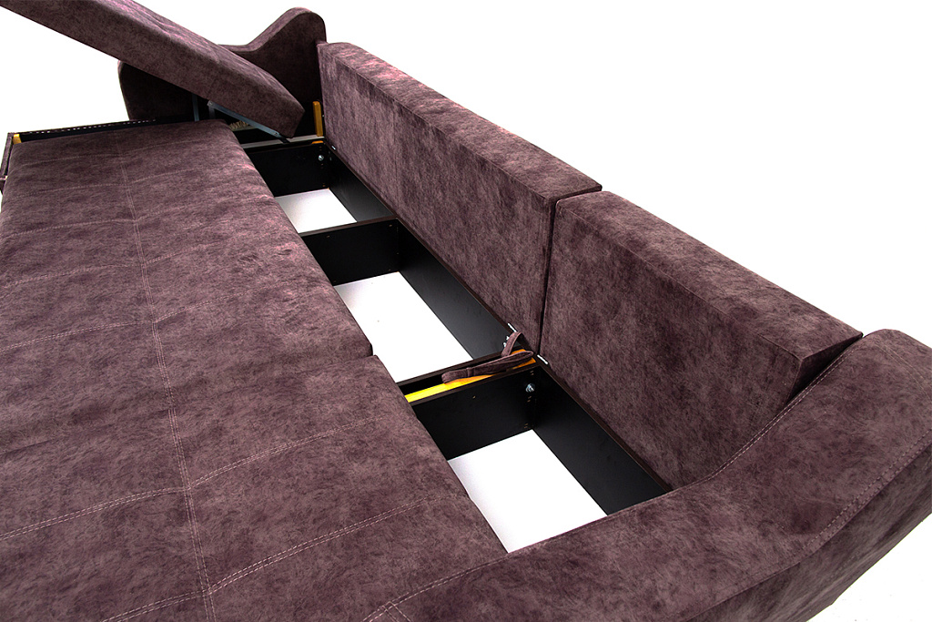 Способ раскладывания: потянуть переднюю часть дивана на себя, выдвинуть сиденье и поставить механизм на пол. Опустить спинку.