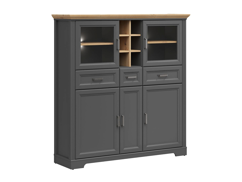 - в нижней части — 3 отделения за распашными дверями, центральная из которых может быть установлена как справа, так и слева