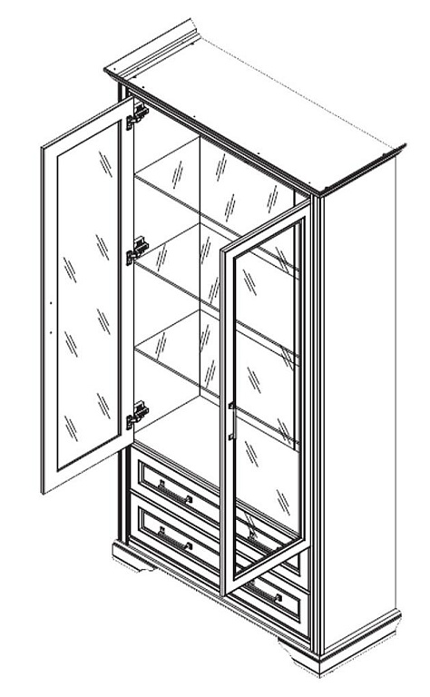 - 2 распашные двери со стеклянными вставками и 2 выдвижных ящика;