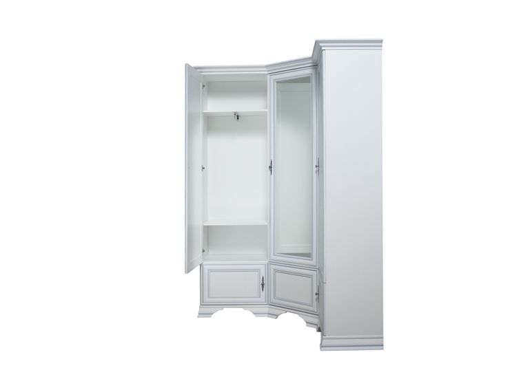 - В верхней части шкафа установлен декоративный карниз из МДФ с серебристой патиной;