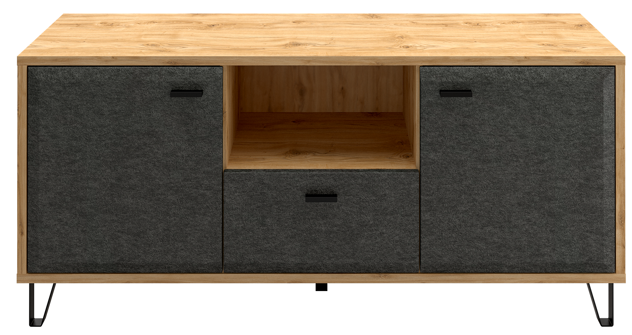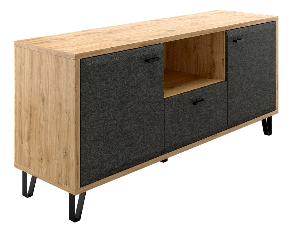 • Скругленная форма фасада в цвете "Графит" и  стильные металлические ножки позволят безупречно оформить вашу гостиную.