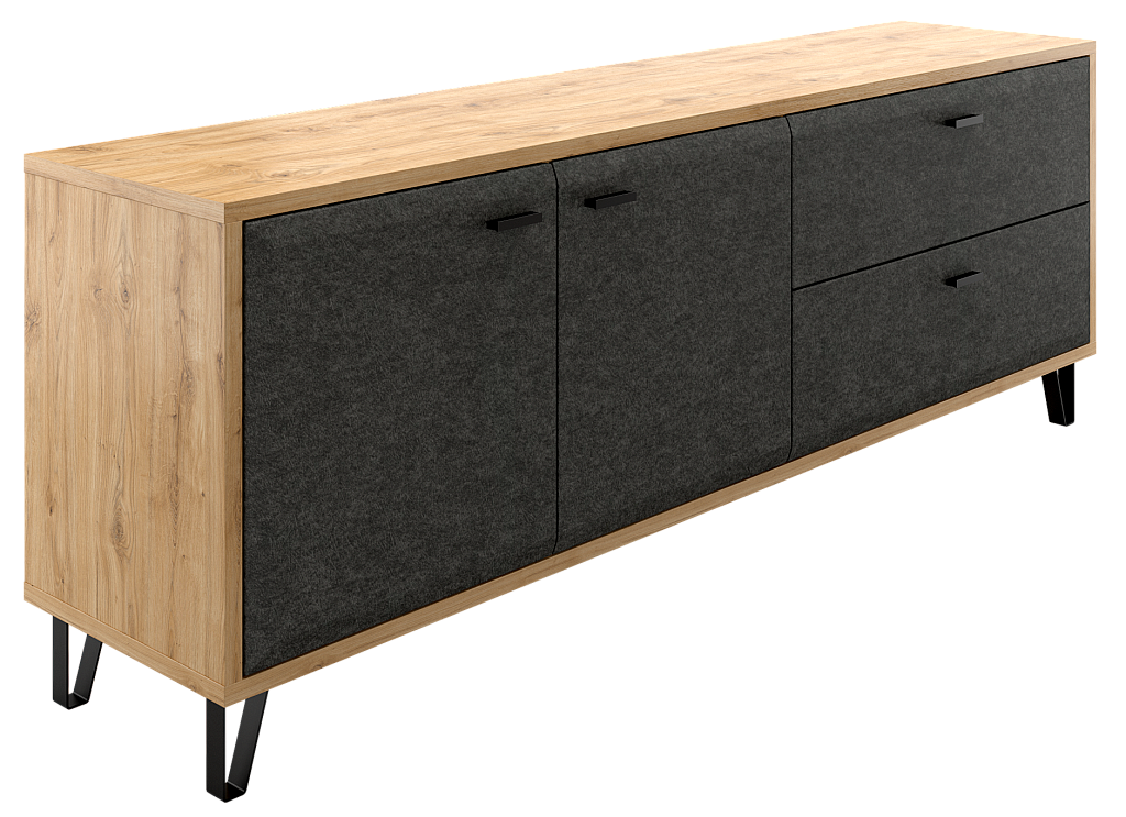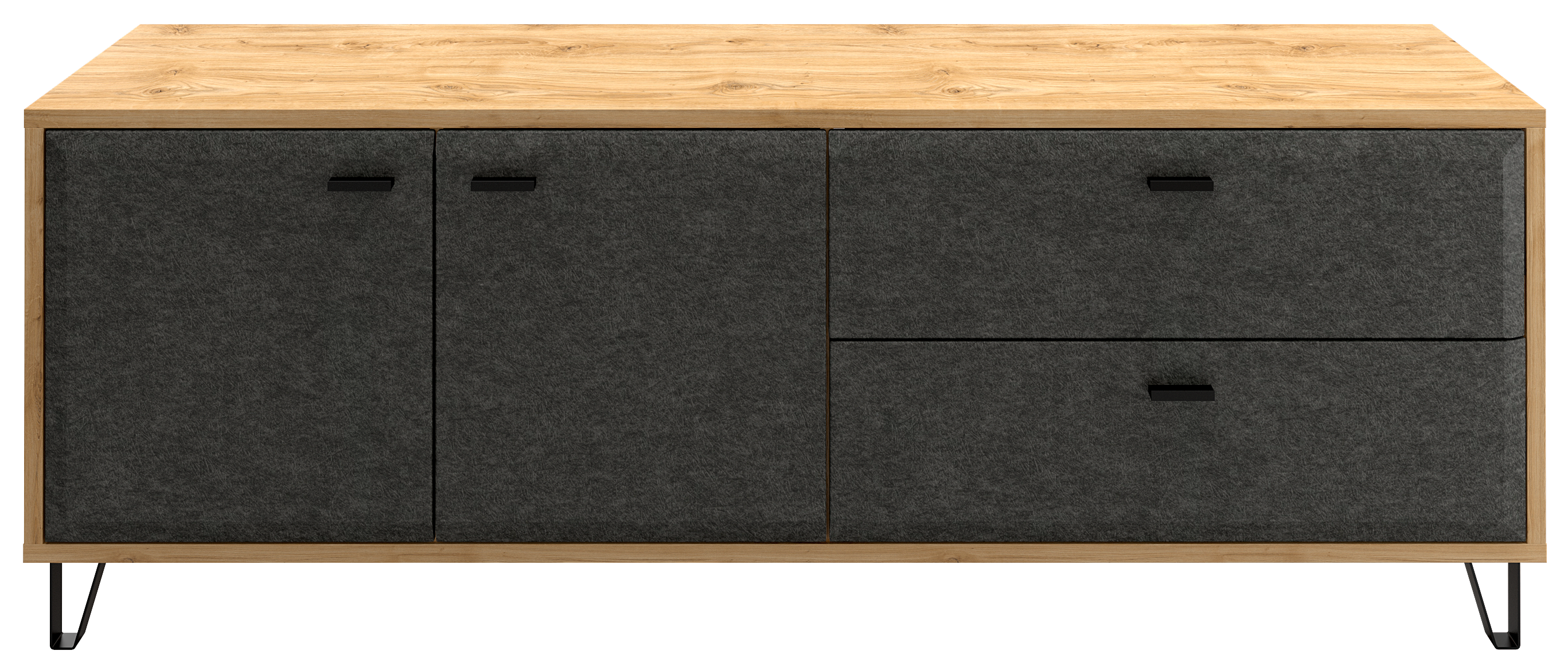 - Скругленная форма фасада в цвете "Графит" и стильные металлические ножки позволят безупречно оформить гостиную комнату.