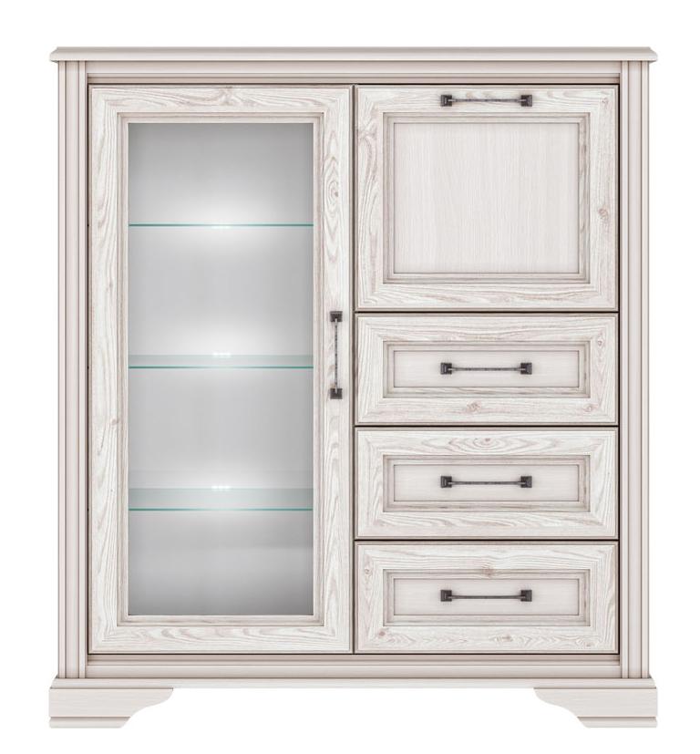 • 1 откидная дверь, 3 выдвижных ящика на шариковых направляющих полного выдвижения, 1 распашная дверь со стеклом (стекло прозрачное);