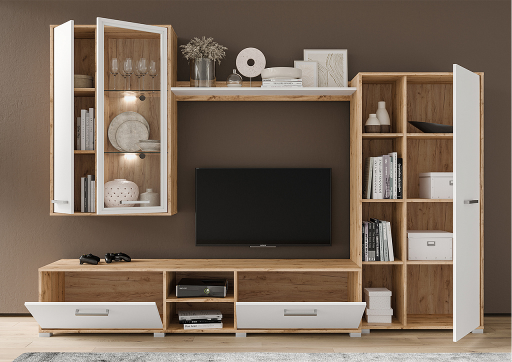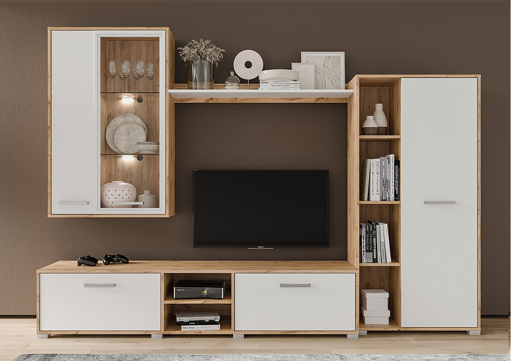 Набор мебели, который сочетает в себе всё то, что необходимо для обустройства гостиной небольшого размера с максимальным удобством и функциональностью. Стильный дизайн и приятное цветовое решение набора станут настоящим украшением Вашей гостиной.