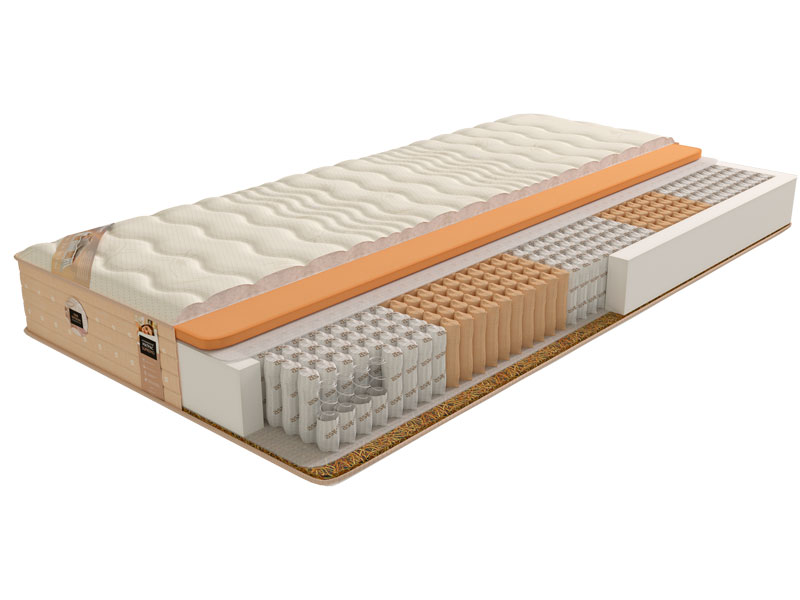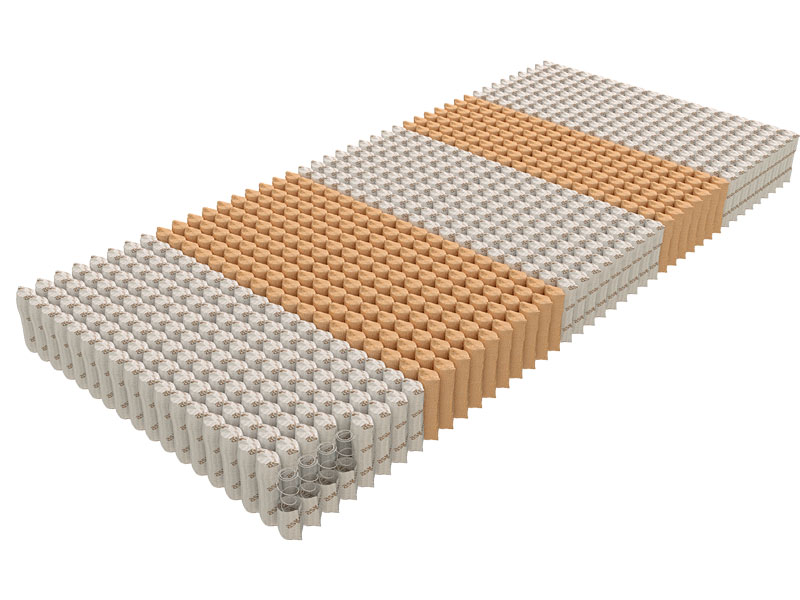 Независимый пружинный блок состоящий из различных по степени жесткости и упругости зон. Каждая из зон, выполненная из пружин различной жесткости, предназначена обеспечивать уровень поддержки, необходимой определенной части человеческого тела в соответствии с рекомендациями мануальных специалистов.