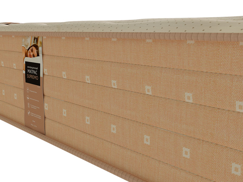 Supremo – это новый продукт, не имеющий аналогов на рынке! Материалы и наполнители , содержат экологически чистое бамбуковое волокно, которое позволяет устранить избыточную влагу и тепло и обеспечивают свободную циркуляцию воздуха. Уникальное покрытие матраса создает отличную терморегуляцию и свежесть. Оно отличается от всех прочих покрытий легкостью, мягкостью, оно не мнется, не электризуется, обладает высокими показателями износостойкости.