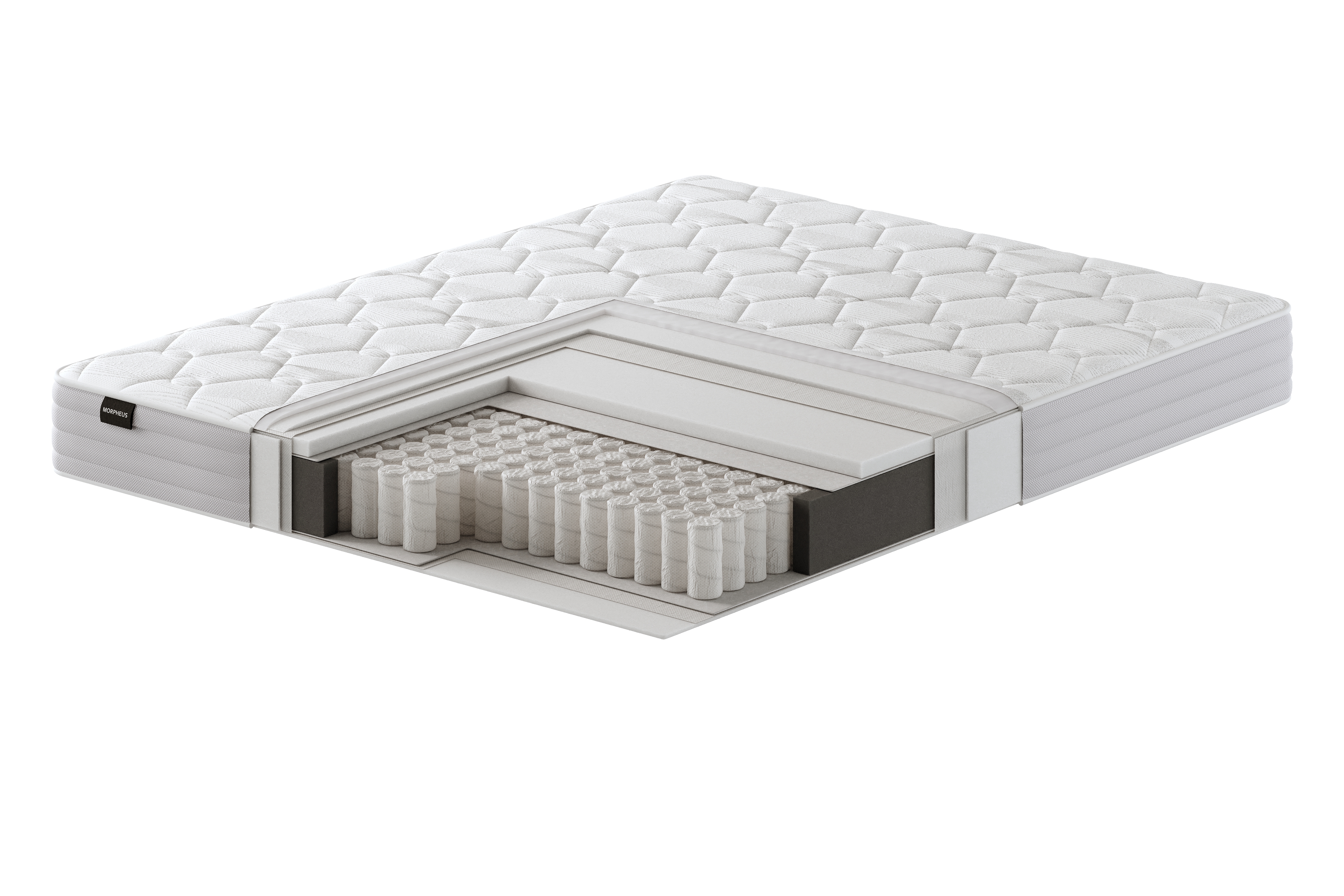 Гипоаллергенные материалы, бесшумная конструкция и надежная склейка HotMelt без запаха делают матрас безопасным и долговечным. Сертифицирован по стандарту OEKO-TEX®.