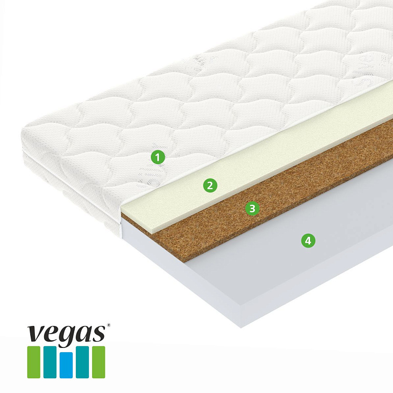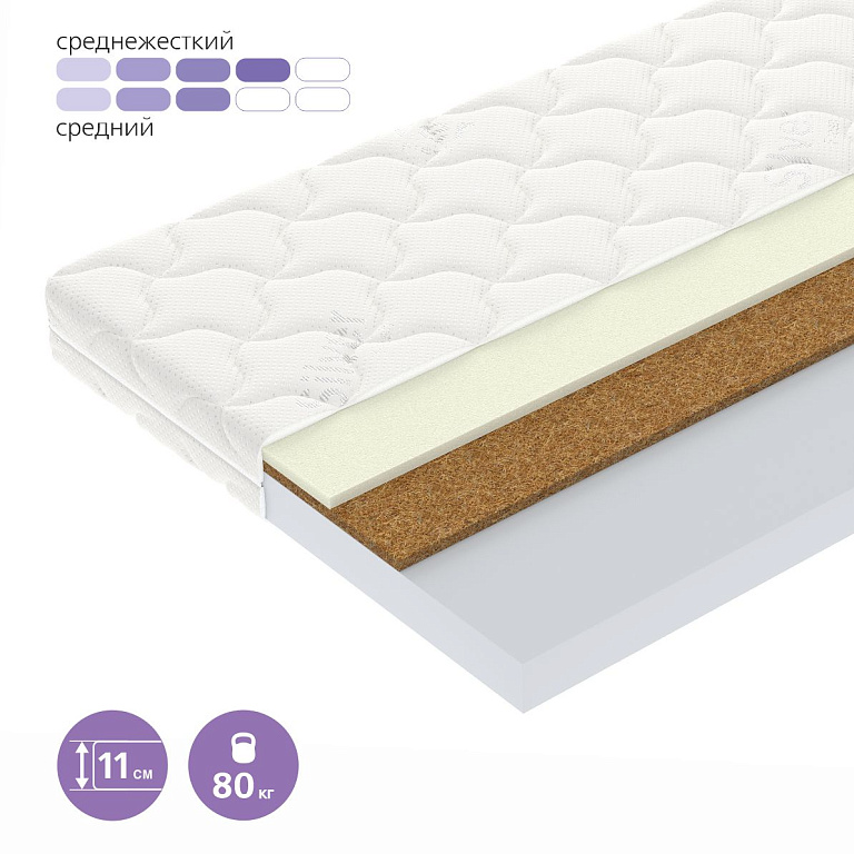 | Кокосовая койра | Натуральный материал из кокосовых волокон, спресованных в однородные плиты. Слой используется для придания матрасу дополнительной жесткости. |