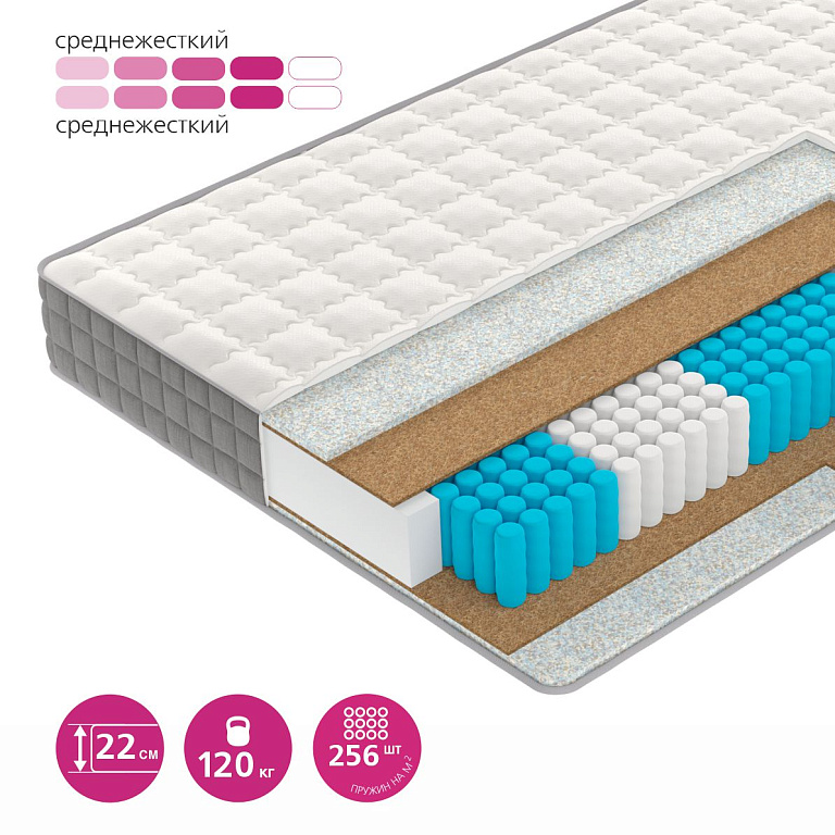 | Smartpocket PRO 5-Zone | Усовершенствованный блок независимых пружин Smartpocket плотностью размещения 256 пружин на м2. Каждая пружинка упакована в отдельный чехол и работает самостоятельно, отдельно, независимо от других пружин в блоке. Такой блок принимает форму тела спящего на матрасе - в этом и заключается ортопедический эффект. Усиление ортопедического эффекта происходит благодаря пяти выраженным зонам поддержки, которые равномерно распределяют нагрузку на матрас для более комфортного и здорового сна. |