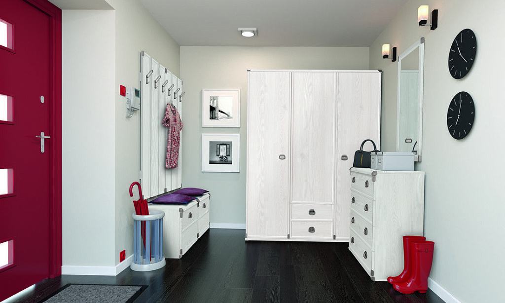 Коллекция Индиана не похожа ни на классическую, ни на современную мебельную моду. Имитация состаренного дерева, металлические накладки на углах, ярко выраженная древесная структура - далеко не все отличительные особенности коллекции. Благодаря широкому ряду элементов системы вы без труда обустроите прихожую.