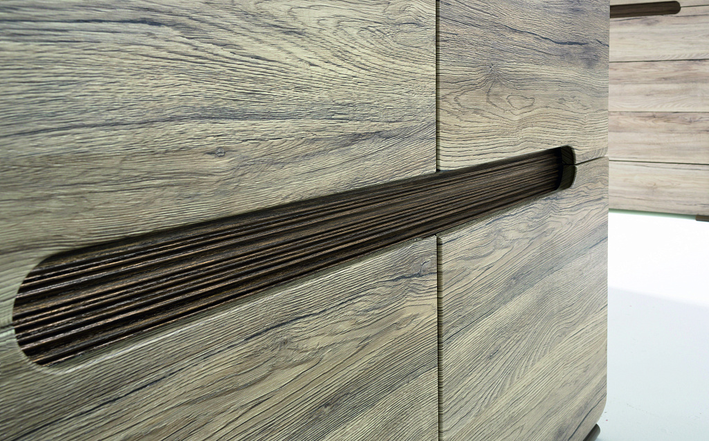 Azteca отражает новые тенденции в мебельной моде: древесные глянцевые фасады, контрастирующие с декоративными вставками цвета "дуб венге Магия", плавные линии, футуристические элементы, оригинальный способ открывания дверей и огромное количество элементов в составе системы помогут создать неповторимый интерьер спальни.