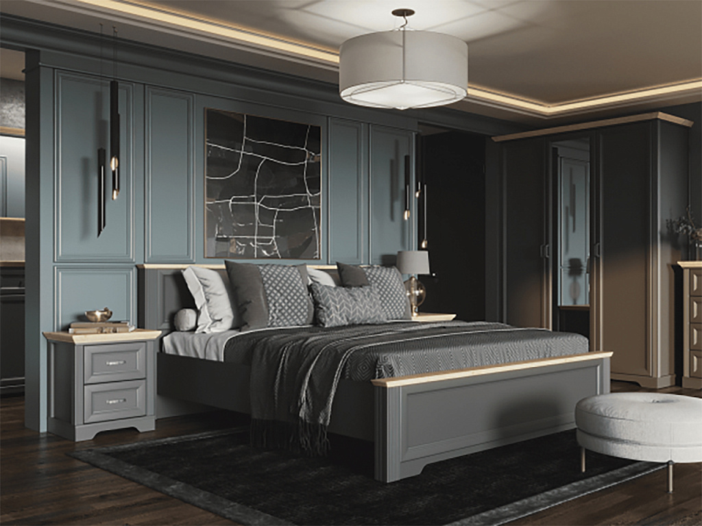 Нетривиальное сочетание классики и скандинавских мотивов: столешницы с древесной текстурой, изящные гофрированные планки, металлические ручки. Насыщенный графитовый цвет фасадов и фурнитура с системой плавного закрывания — отличительные особенности коллекции Jasmin, выполненной в «темном скандинавском» стиле